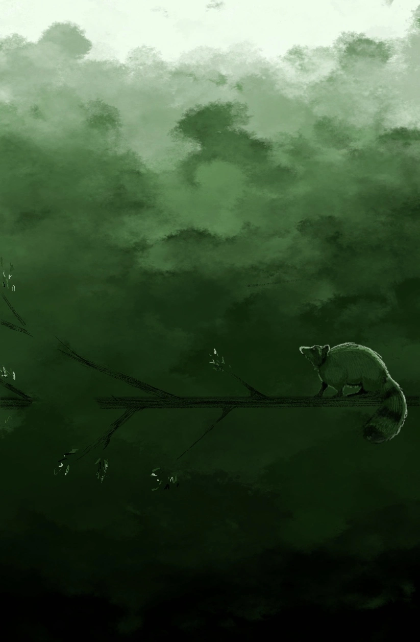 Step into a world of quiet strength and reflection with To the Edge, a striking digital artwork that captures a solitary moment suspended in time. Rendered in rich forest tones and layered textures, the piece features a lone creature standing at the farthest reach of a delicate branch, gazing into the unknown.